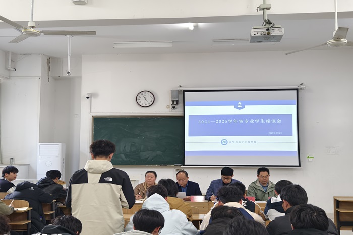 为进一步帮助转专业学生深入了解新专业、适应新环境,更快更好地融入学院的学习和生活,4月2日下午,电气与电子工程学院于致知楼C109召开转专业学生座谈会。党委副书记尚磊、副院长樊晓宇、专职辅导员陈慧中、陈更强出席会议,2024级全体转专业学生、学生会学习发展部全体成员参加本次会议,会议由陈慧中主持。