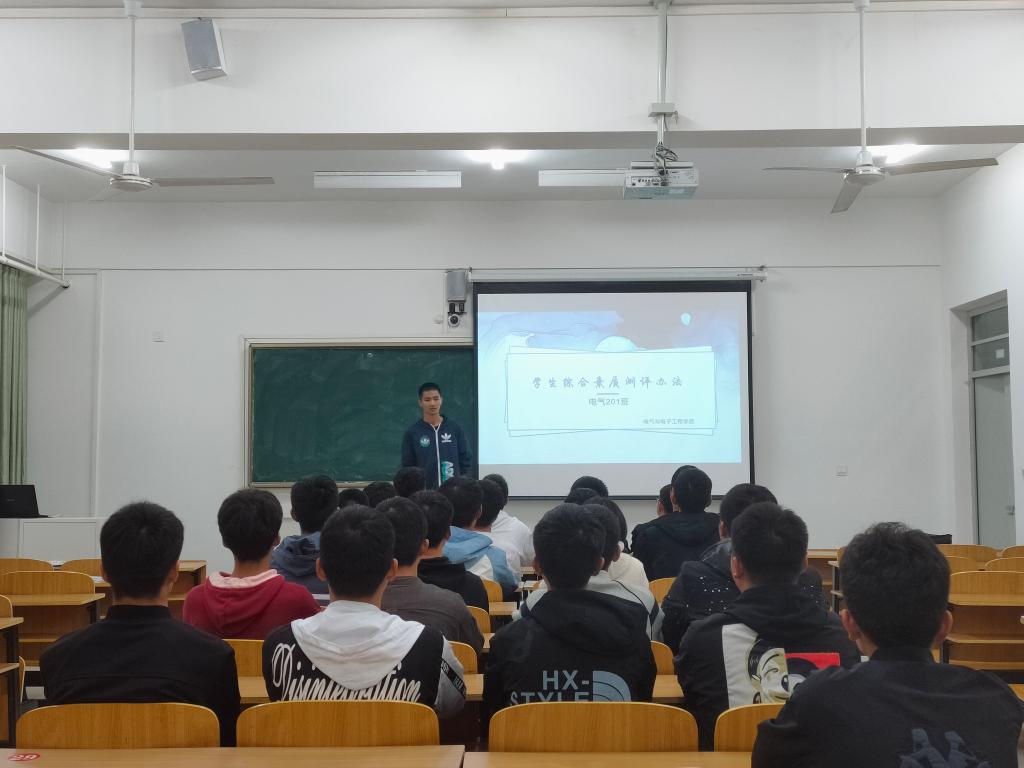 为增强2020级新生对学年度综合素质测评的了解与认识,提高学生在大学期间综合发展的意识,促进学生全面发展和健康成长成才。10月28日至30日,电气与电子工程学院在新生中开展学生综合素质测评办法学习宣传活动。本次活动由各班的导生组织,2020级全体新生参加。