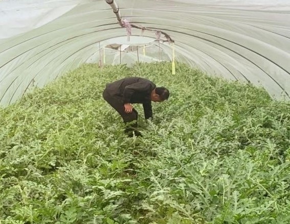 在紫蓬镇农兴社区蔬果产业园,团队成员们在当地村民的介绍下得知,今年产业园36个大棚都种上了西瓜和羊角蜜,而且还栽种了部分露天西瓜,每亩地能产6000斤西瓜。100亩的土地里,共种植70亩西瓜,其中大棚种植30亩,露天40亩。连日来,天气晴好,温度持续上升,大棚西瓜生长也进入关键期,特别容易发侧枝,所以在移栽西瓜时,农民会及时给西瓜打叉,防止西瓜侧枝肆意生长,造成西瓜个头小,品质差等不良后果。