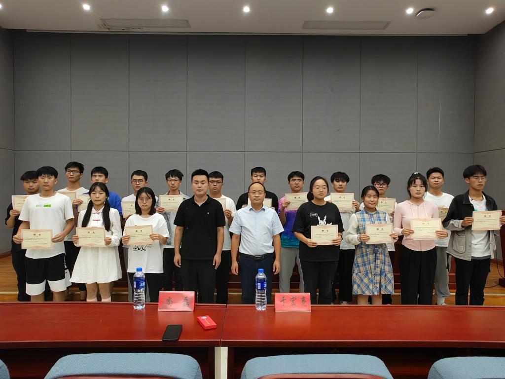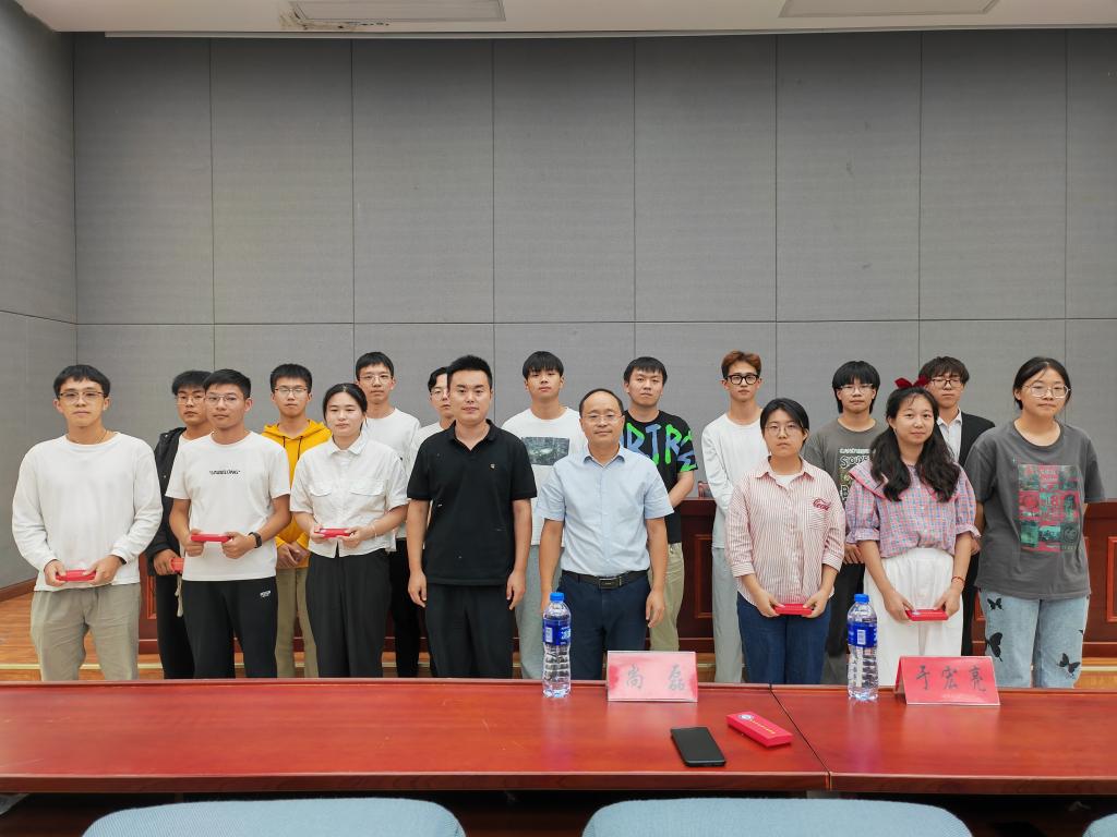 尚磊为2021级导生团成员颁发纪念品并与他们合影留念。于宏亮宣读2022级导生聘任名单,并为他们颁发聘书。
