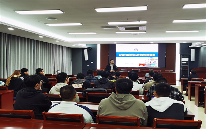 马晓辉介绍了学校研究生教育发展历程及学校研究生奖学金设置情况,详细分析了近几年来学校研究生报考和录取变化情况,并对明年招生形势进行了预估,阐明了报考安科研究生的优势和有利之处,希望2023届毕业生结合自身情况,审时度势,合理报考院校和专业,同时,提醒大家网上报名截止时间前的信息确认。