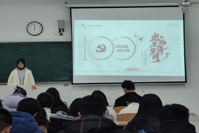 会上,陈烁彤带领同学们回顾党的发展历程与光辉岁月。回望党的百年历程,中国共产党秉持为中国人民谋幸福、为中华民族谋复兴、为人类社会谋大同的初心使命,团结带领全国各族人民浴血奋斗、英勇牺牲、奋发图强、顽强拼搏,书写着人类发展史上惊天地、泣鬼神的壮丽史诗!随后她向同学们阐述学习党的光辉岁月的重要意义,这是适应时代发展的现实需要,是建设中国特色社会主义现代化建设事业的发展需要。最后她提出当今世界在变化,形势在发展,作为新时代青年应当坚定不移听党话、跟党走,敢想敢为又善作善成,立志做有理想、敢担当、能吃苦、肯奋斗的新时代好青年,让青春在全面建设社会主义现代化国家的火热实践中绽放绚丽之花。