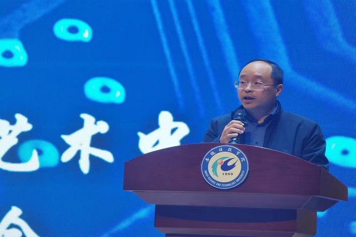 骆海邦在致开幕词中指出,学院树立文化品牌总体目标坚持以习近平新时代中国特色社会主义思想为指导,以立德树人为根本任务,以培育社会主义核心价值观为导向,体现三全育人理念,全面推进高素质人才教育。他对学院全体师生提出三点要求,一要以文育人,聚焦品牌教育,确保活动效果;二要以文化人,打造精品活动,展现学院师生积极向上的精神风貌;三要以文促学,使专业学习活动化、课外活动专业化、文体理工交融化,以实现知识、能力、素质等多方面的提高。