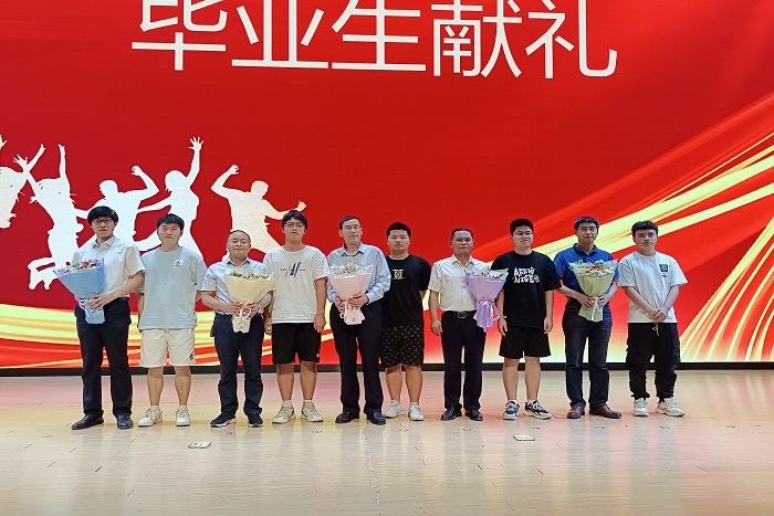 尚磊在典礼上针对学院的学风建设和整体发展,进行2023届毕业生毕业教育工作部署。随后,教师代表徐兵勉励毕业生铭记责任,敢于担当,不断追求卓越,实现自己的价值。毕业生代表李威回顾了大学四年时光,表达对学校、老师的感激和对校园生活的留恋。最后,主持人刘志伟、任淑慧宣读2023届毕业生“双优生”表彰人员名单,毕业生们为教师代表和辅导员代表献礼并合影留念。