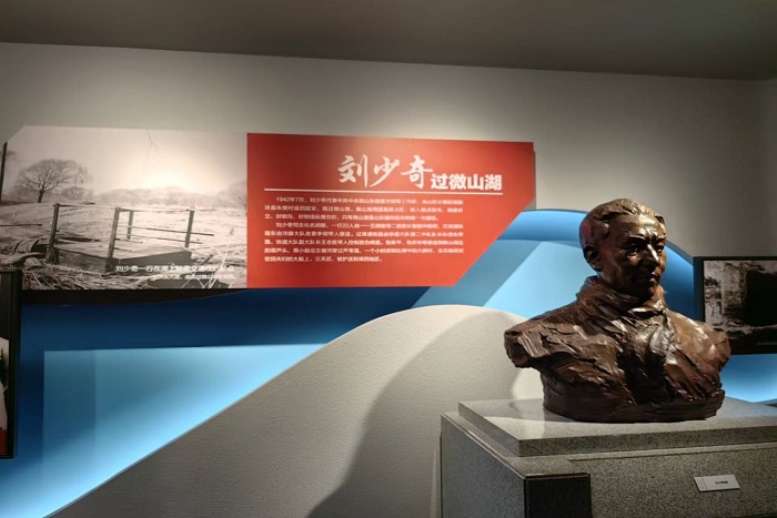1994年,微山县人民为缅怀革命先烈的光辉业绩集资兴建了微山湖抗日英烈纪念园和铁道游击队纪念碑。抗日英烈纪念馆总面积1200平方米,馆内陈列着抗日英雄的照片、革命文物。团队进入纪念馆后,被浓厚的红色气氛深深的感染,馆内全景式壁画、雕塑、革命文物、图片资料再现了当年铁道游击队浴血奋战、抗击日寇的战斗场景。纪念碑碑体造型为破浪远航的帆船,分别将全县在土地革命、抗日战争、解放战争和建国后牺牲的1100名烈士,按姓氏笔画为序镌刻在碑上,作永久纪念。