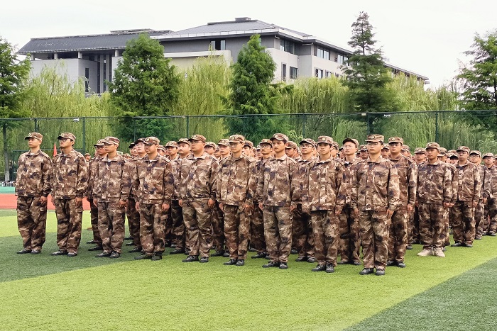 操场上,一群身着迷彩服的新生正站着整齐的军姿,踏着有力的正步,在阳光下尽情地挥洒着他们的青春,每一次的站军姿、踢正步、走方阵完美彰显了他们的身姿风采,展现出了当代学子斗志昂扬的士气和坚定不移克服困难的决心。在教官的亲身示范和严格指导下,他们相互帮助配合,在短短的二十几天内磨合出了默契,成为了相互扶持的朋友,树立了团结一致的集体意识,他们将带着更强健的体魄、更坚韧的意志和更出色的团队合作精神,投入到学习和社交活动中。