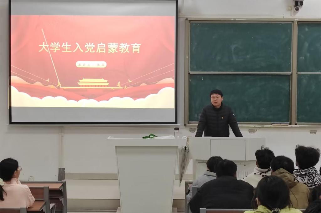 张深围绕党员条件、入党动机、入党流程、申请书撰写、思想汇报等五个方面,系统阐释了党员发展的流程,深入解读了党员条件与各项要求。他解释了“中国共产党为什么能,中国特色社会主义为什么好”,向同学们讲解了党的性质、宗旨、原则,让同学们准确地理解中国共产党的性质和基本知识,加强党性认识,积极向党组织靠拢。他希望全体学生在今后的生活学习中,自觉争做马克思主义和共产主义的坚定信仰者和忠实实践者,做中国精神的传承者、中国力量的缔造者、中国故事的讲述者,充分利用大学四年的时光,锤炼政治品格、掌握专业技能、培养创新思维、树立报国之志,获得思想上和学业上的双丰收。会后,张深带领全体学生学习入党誓词。