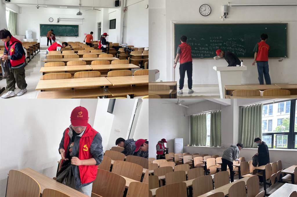 活动开展过程中,支部全体党员戴上志愿帽、穿上志愿服,分成八个小组,分别于致知楼A、致知楼B、致知楼C进行志愿清扫活动。他们配合默契、埋头苦干,通过打扫教室、摆放桌椅、清理垃圾等实际行动,为营造更加干净、清洁、舒适的学习、生活环境,为构建和谐、文明校园贡献自己的力量。
