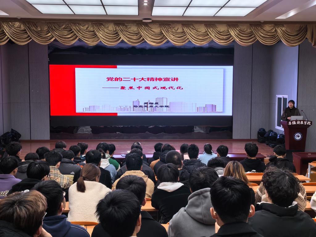 为深入学习宣传贯彻党的二十大精神,坚持不懈用习近平新时代中国特色社会主义思想凝心铸魂,提高全体学生的政治意识。11月14日晚,马克思主义学院纲要教研室教工党支部教工党员王瑞晨受邀在敏行楼A报告厅作了题为“党的二十大精神宣讲之聚焦中国式现代化”的专题报告会。电气与电子工程学院党委副书记、纪委书记尚磊,学院学生党员及部分入党积极分子代表出席本次报告会,活动由光电专业学生党支部书记张深主持。