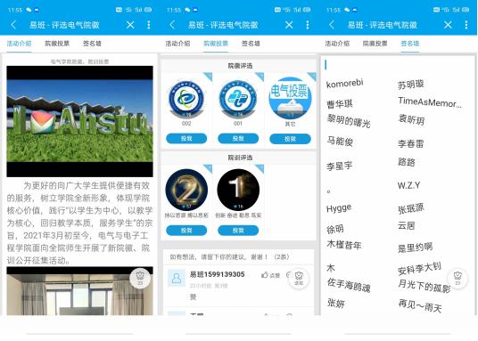 3月,学院易班微社区发布推文11篇。为庆祝建党100周年,进一步激发学生的爱党、爱国热情,切实增强学生的历史责任感和使命感,我院易班工作站督促同学们潜心笃志学党史,积极参与校级党史知识竞赛,深刻感悟党的初心使命,担当作为,砥砺前行。此外,我院易班工作站助力教育教学工作,配合开展学院院徽、院训评选活动,激发学生使用易班的积极性,增强易班亲和力、吸引力。(特约通讯员:王延丽 审核:尚磊)