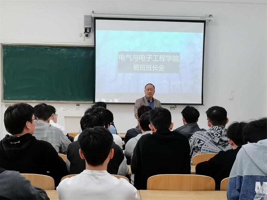 为进一步推进电气与电子工程学院易班网络育人工作,做好学期初易班平台建设重点工作部署。3月11日,电气与电子工程学院于致知楼A107举行了学期初易班班长工作会议。学院党委副书记、纪委书记尚磊,易班工作站指导老师张深,易班工作站全体成员,各班易班班长参加会议。