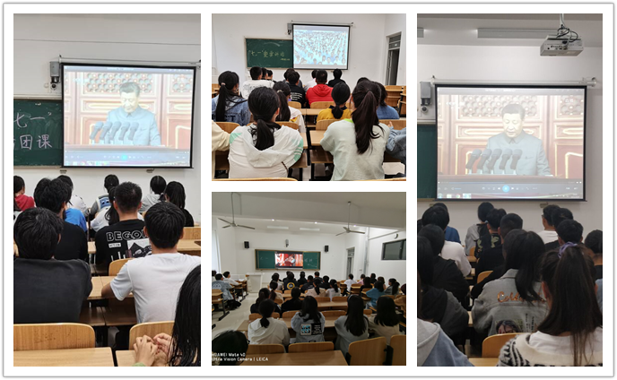 各新生团支书组织班级学生们观看了庆祝中国共产党成立100周年大会视频。在庆祝大会上,习近平总书记深情回顾了一百年来我们党走过的光辉历程,深入总结了一百年来我们党取得的伟大成就,深刻阐述了一百年来我们党不懈奋斗的精神之源,一百年来我们党取得成功的历史经验,并描绘了我们党面向未来的奋进图景。新生们在观看学习中深切感受到了中国共产党“伟大、奋进、自强、活力”的光辉品质和伟大感召力,更加坚定了民族复兴的自信心和坚定“跟党走”的政治自觉。
