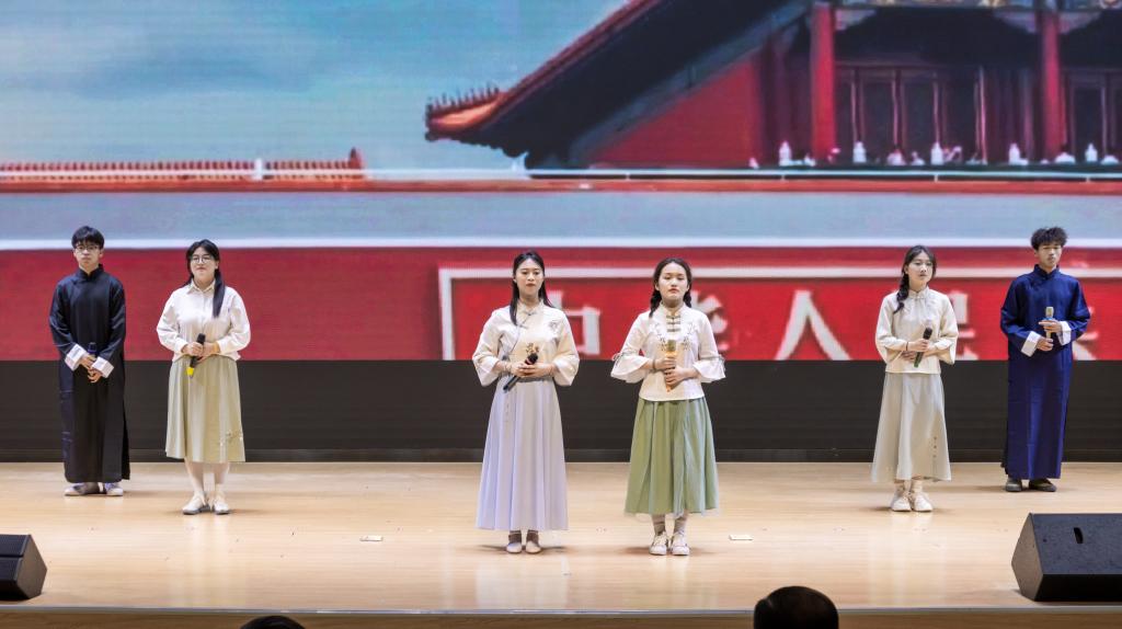 在晚会最后一个篇章,新途启航。《强国有我》朗诵和《歌唱祖国》大合唱,激起了每一位青年学子激情澎湃的心,更激励着广大毕业生同学在人生新的征程上扬帆远航,在各行各业辛勤工作,为祖国建功立业。