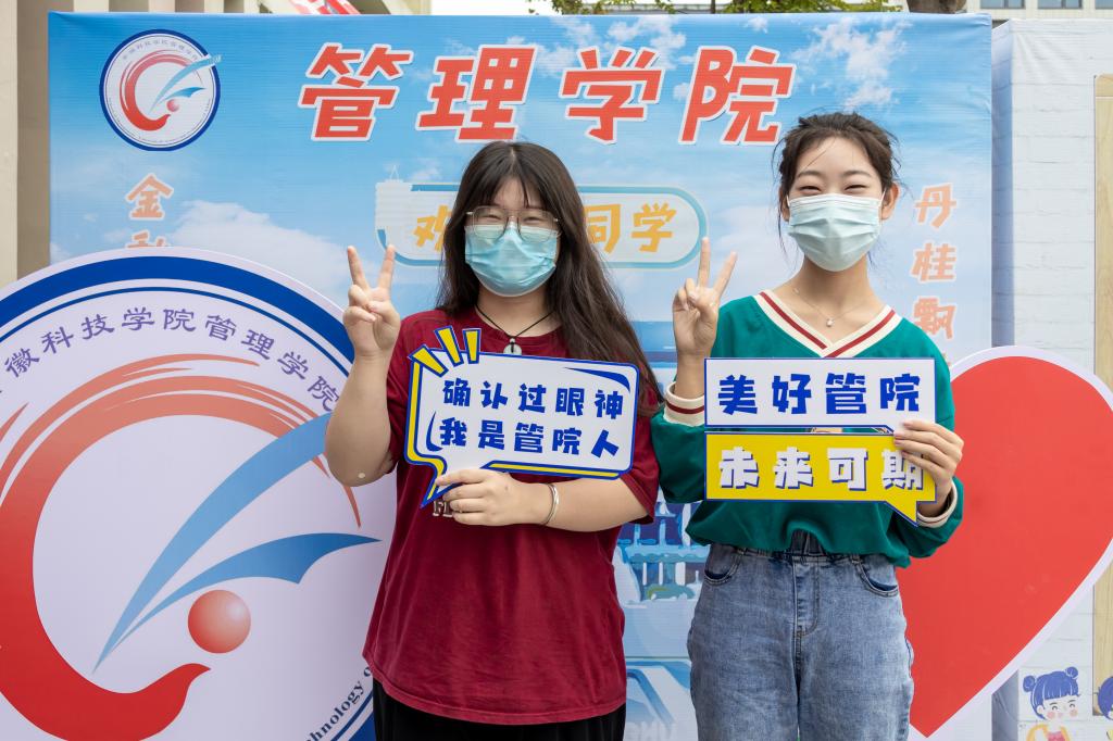 在管理学院入学报到信息核验点,竖立着一块色彩斑斓的管理学院留影背景墙——“我与院徽合张影”。学院特别为每一位报到的新生拍下开学的第一张照片。随着一声“咔嚓”轻响,美丽的安科校园,未来将活跃着中国足彩网的年轻身影,他们笑得灿烂,朝气蓬勃。