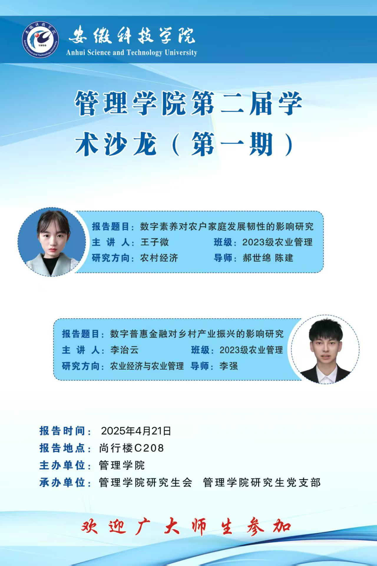 为进一步提升管理学院研究生科研创新和学术交流能力,活跃学术氛围,拓宽学术视野,激励学术创新,学院将举办第二届第一期研究生学术沙龙系列活动,现通知如下。