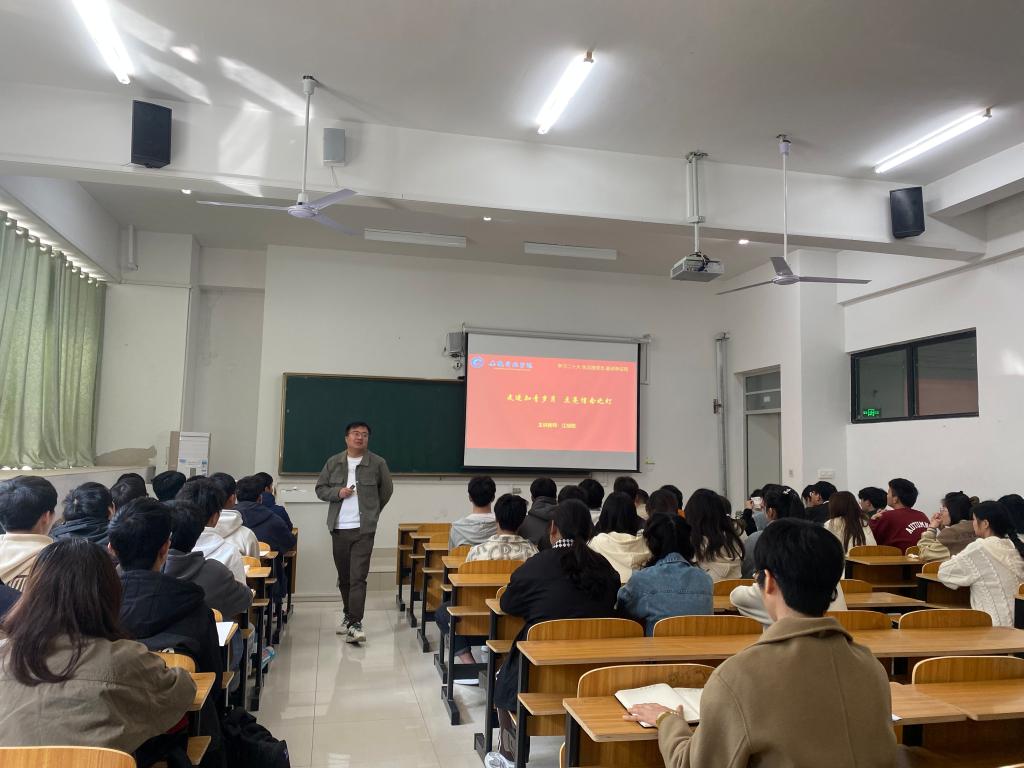 主题班会上,主讲教师江旭聪以“走进知青岁月,点亮信念之灯”为主题,通过讲述习近平总书记在知青期间如何“过五关,斩六将”的故事带领同学们重温习近平总书记青少年时期成长的曲折与艰辛,直观感受到天将降大任于斯人也必先苦其心志的人生哲理。在第二篇章中,江旭聪结合同学们的学习和生活实际进行课堂互动,深入探讨习近平总书记青少年时期砥砺奋进、勇于担当、锐意进取、无私奉献的优秀品质,对青年学生具有坚定理想信念、树立远大志向的重要意义。最后,他对同学们提出三点殷切希望:一是坚定理想信念,规划好人生每一步。二是厚植家国情怀,多读书、多思考,涵养内心,拥有诗和远方。三是矢志吃苦奋斗,发扬“三牛精神”,少说多做,苦干实干。