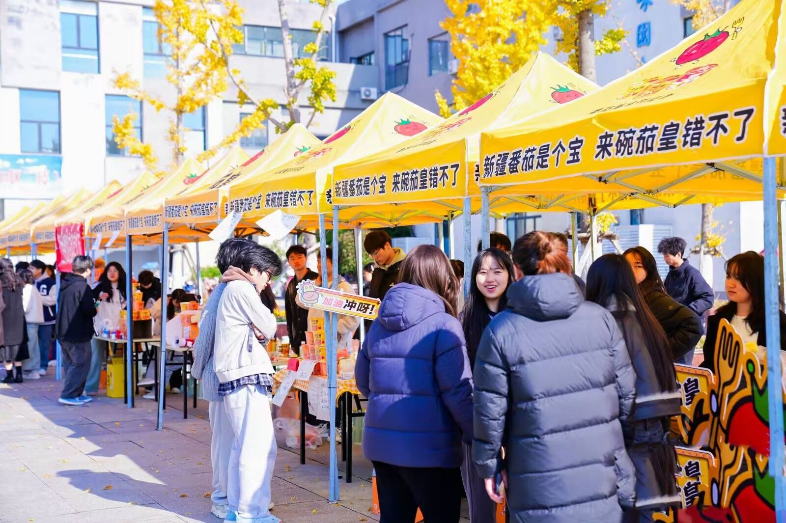 活动伊始,各个“学生商家”紧锣密鼓地筹备着待出售的商品,放眼望去小广场两侧的商品琳琅满目,让人目不暇接。随着活动的进行,越来越多的学生被叫卖声吸引过来,一时之间,叫卖声、砍价声交织在一起,置身现场仿佛置身于热闹非凡的集市。“学生商家”对于路过的学生,大家你争我抢,纷纷使出看家本领推销自己的产品。活动最后,许多队伍准备的货物销售一空,甚至出现供不应求的情况。各参赛团队充分发挥自身优势,展示了出色的创新思维和创业能力。