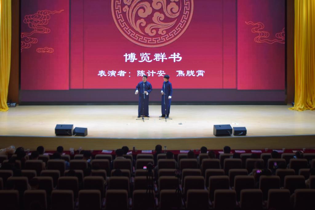 工商管理202班大合唱《国家》,管院学子用歌声献给祖国母亲,深情的表达对国家的热爱。方辛老师和同学们带来的舞蹈《红昭愿》用现代新鲜方式来表达了昭君的看不见的孤独与挣扎。话剧《教你拍马屁》和相声表演《博览群书》让同学们在欢声笑语中也深入思考要在文化传承和创新中取其精华去其糟粕。