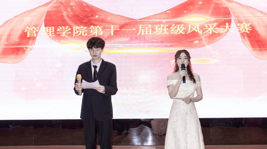 共铸青春梦,齐展韶华风。为增强班级组织凝聚力,营造学生成长成才的文化氛围,展现各班级积极向上的精神风貌,引导学生“创和谐班级,展青春风采”,5月25日晚7点,值建团百年之际管理学院在敏行楼A报告厅举办以“奋斗百年路,启航新征程”为主题的班级风采大赛。学院党委副书记陶漫、专职辅导员黄斐和姚姝媛、管理学院老师李喻出席本次活动,各学生组织负责人应邀参加活动并担任评委,管理学院共计100多名学生到场观看。