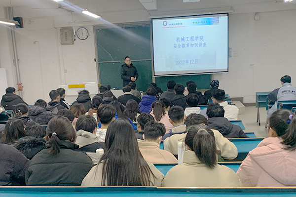 为增强2022级新生安全意识,提高自我保护能力,创建平安校园,12月4日晚,机械工程学院在新知楼A102举办2022级新生安全教育知识讲座。全体2022级班长、团支书、生活委员及寝室长聆听讲座。讲座由辅导员孟凡生老师主讲。