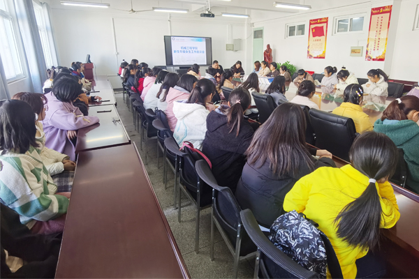11月9日中午,机械工程学院党委副书记张程在会议室主持召开了2021级新生女生工作座谈会。专职辅导员孟凡生、姚迪及2021级全体女生参加座谈会。