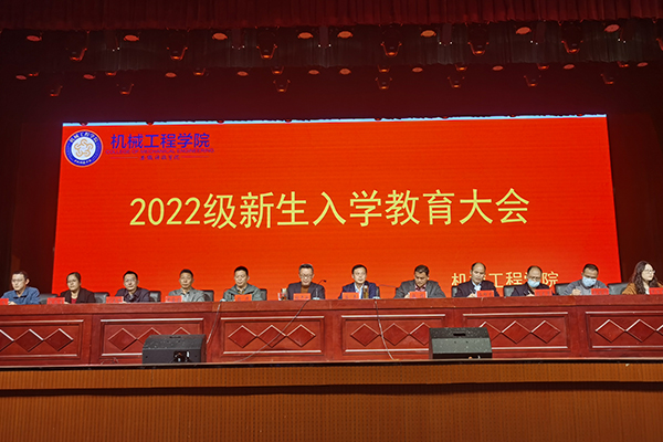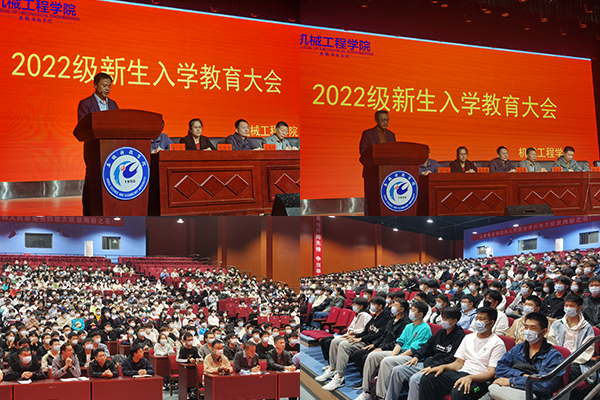 2022年10月19日下午,机械工程学院在凤阳校区大学生活动中心隆重召开2022级新生入学教育大会。学院党委书记、院长陈丰,正处级组织员张严政,党委副书记、纪委书记张程,党委委员副院长张华、乔印虎、副处级辅导员开金苗,党委委员、机械设计制造工程系主任缑瑞宾,机电控制工程系主任张立勇,汽车工程系主任刘春辉,教学秘书苑风霞,党政办公室副主任王飞,团委副书记谭博文,2022级全体新生辅导员、兼职班主任及564名新生参加会议,大会由张严政主持。