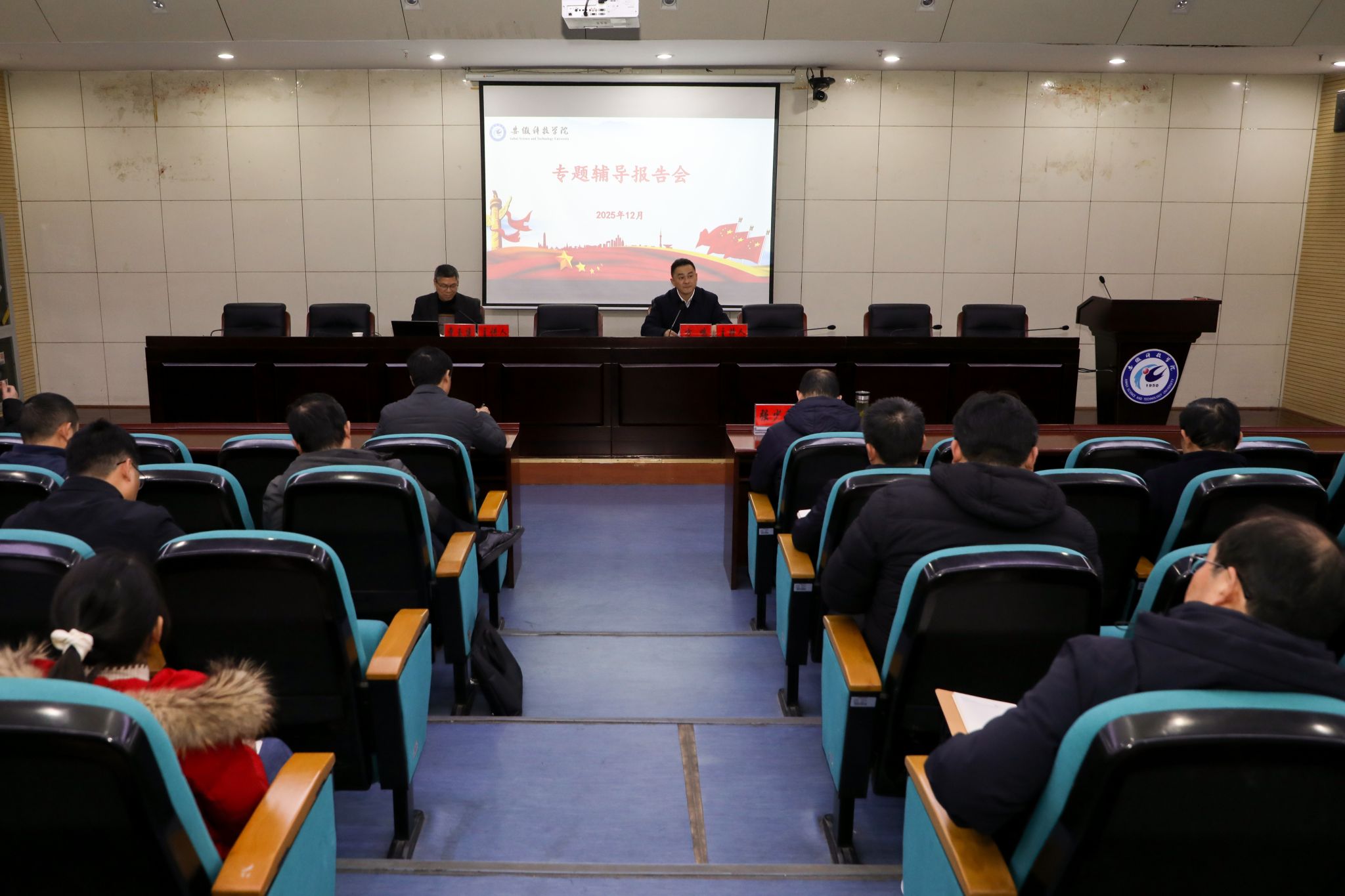 为持续深入推进巡视整改与专项整治工作,进一步提升我校治理能力和治理现代化水平,深化廉政风险防控, 12月12日,省教育厅监审处副处长、二级调研员曹玉建,三级调研员强少华应邀来校,为我校干部做“防范招标采购风险,保障学校高质量发展”专题辅导报告。党委书记时伟,党委委员、副院长赵伟峰,全体处级干部及采购工作人员参加会议。报告会由党委委员、副院长方鸣主持。