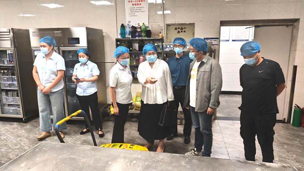 为了加强国庆节期间校园安全管理,9月26日下午,蚌埠市龙子湖区商务局、市场监督管理局、卫健委等部门组成的联合检查组深入我校食堂、校医院、超市检查校园安全工作。后勤保障部副主任谷凯及校医院、饮食服务监管中心人员陪同检查。