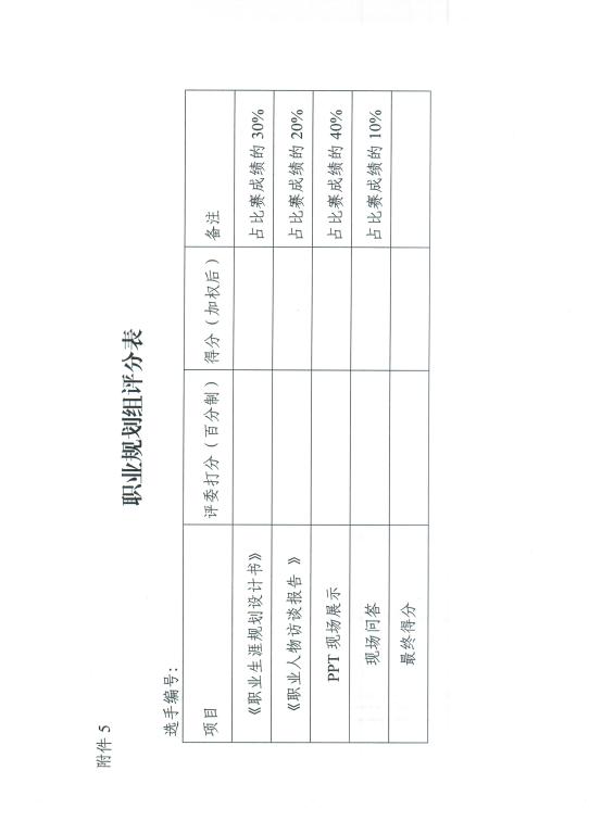 职业规划组比赛分为书面作品评审、PPT 现场展 示与问答二个环节。