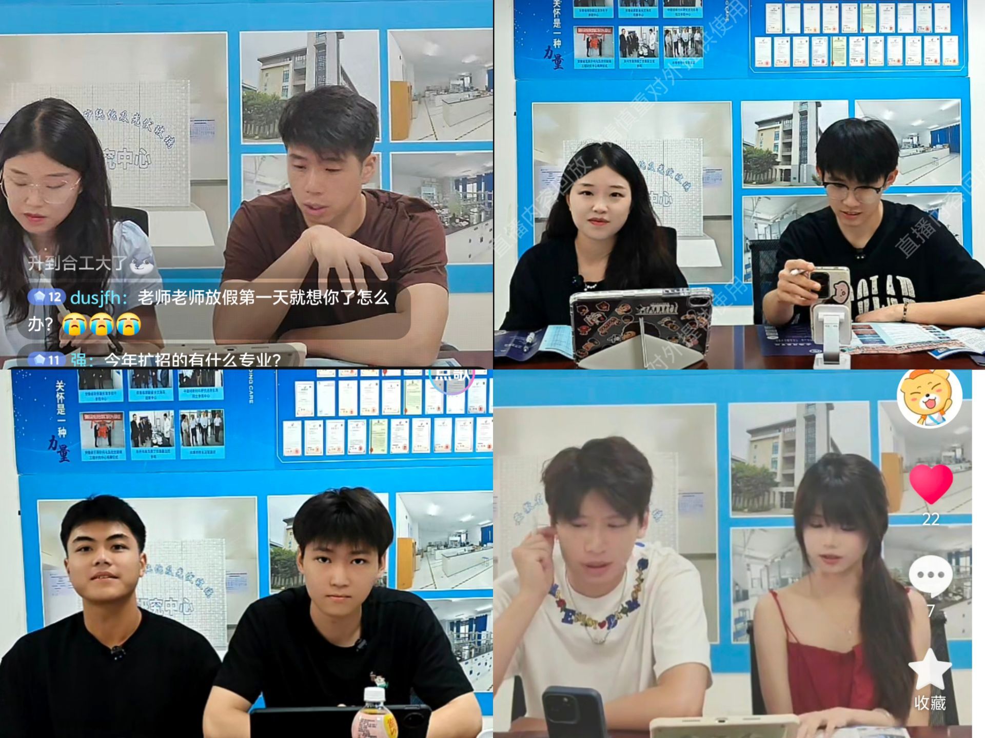 6月26日——7月2日,化学与材料工程学院连续开展多场线上直播。党委副书记张炎和学院辅导员多次担任主播,与考生及家长在线互动,详细解答中国足彩网招生政策、录取规则等疑问。优秀的学长学姐们也纷纷加入直播行列,分享学生在校的学习生活日常、社团活动等,让考生提前感受大学生活的丰富多彩。他们的分享极大地激发了考生报考的热情。