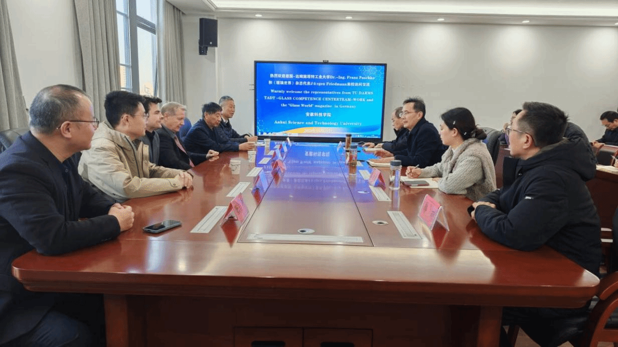 11 月 20 日,“玻璃技术创新与学术合作交流” 主题会议在西附楼 317 会议室举行。会议邀请德国达姆施塔特工业大学玻璃技术中心全球合作副主席佛朗兹博士、德国《玻璃世界》杂志代表尤根,以及蚌埠市科协、安徽万绿生态公司代表参会,学院领导、教师及 2025 届材料与化工研究生共同出席。
