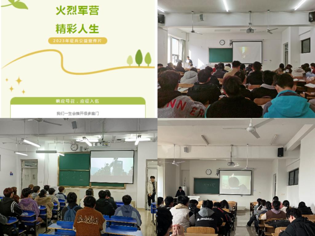 为扎实做好征兵宣传工作,化学与材料工程学院组织全体学生观看2023年征兵宣传片《火热军营 精彩人生》。
