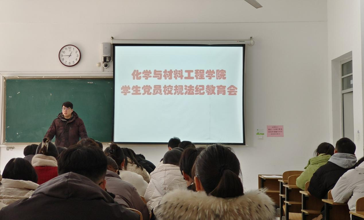 为加强学生党员校规校纪和法纪法规教育,充分激发学生党员在日常生活中的模范带头作用,3月2日中午,化学与材料工程学院于致知楼C103教室召开学生党员校规法纪教育会。教育会由学院党委副书记张炎主持,学院全体学生党员参加。