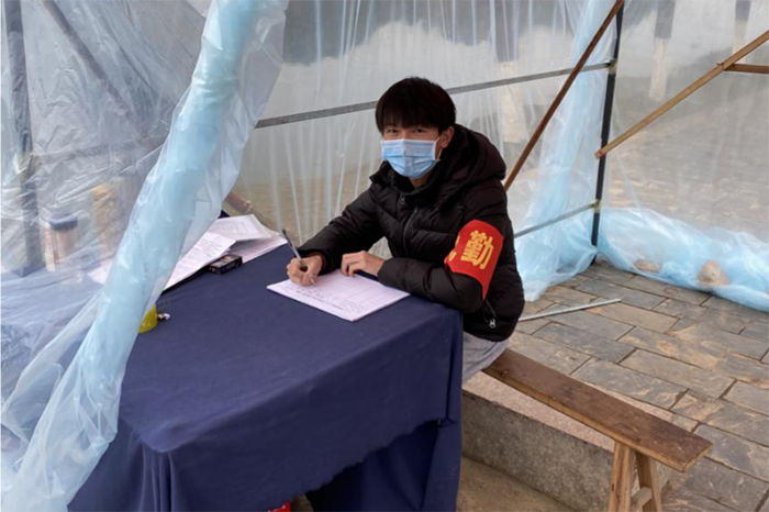 “我可以加入你们的工作吗?”看到家乡设立的疫情工作卡点工作人员的忙碌,食品工程学院食品质量与安全192班吴航向当地村主任提出了自己的请求,与众多志愿者一样,劝返外村的车辆和人进入村内以及登记村民出入情况,他用自己的力量为家乡做出贡献,作为一名大一学生,作为一名共青团员他面对疫情没有畏惧与退缩,主动投入到了家乡疫情防控工作中去,他说:“希望疫情快点结束,所以我从保护身边的人来献一份绵力,这段时间,通过跟村民的交流,让我的家乡话有了进步,自己能为村干部们减轻些负担,也十分开心,坚持做好疫情防控工作,我们一定会战胜这场疫情。”