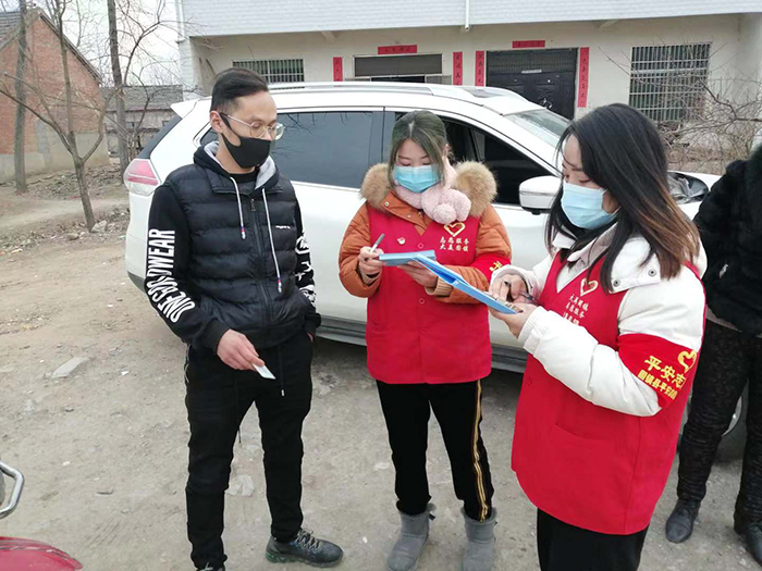 赵贝贝,药物制剂192班学生,她积极参加家乡防疫志愿者工作,劝说要出去的村人要戴口罩,就近买东西,尽量不要外出,给要外出务工的人详细指导填写外出告知书,扫码下载智慧阜南。她说:“志愿者的工作内容虽然很简单,对防疫前线来说也许只是绵薄之力,但是对我们来说是人生中浓郁的一笔,面对疫情,我们需要众志成城,只盼武汉加油,祖国加油。”