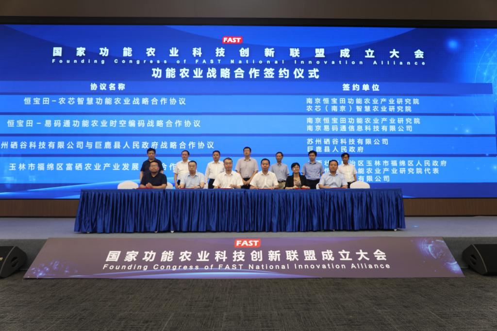 大会由国家功能农业科技创新联盟和南京国家农创园管理委员会主办,南京恒宝田功能农业产业研究院和南京农创园科创投资集团承办,中国科技大学苏州研究院功能农业重点实验室和安徽科技学院协办。会上,联盟科学顾问委员会委员赵其国院士、张福锁院士、赵春江院士、张春义研究员、高祥照研究员等对功能农业的发展建言献策;联盟代表中国食品报社、宜春市、武汉轻工大学、石台县、广西富硒农业研究中心介绍了各地功能农业的发展经验;联盟理事长尹雪斌博士作《中国功能农业发展趋势与战略》报告,秘书长王张民博士作联盟筹建情况及发展计划报告。会上还进行了国家功能农业科技创新联盟聘任证书颁发、功能农业战略合作签约、《功能农业百问》新书发布等。