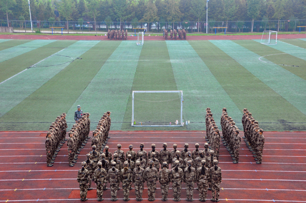 标准的军姿彰显着一丝不苟的态度,每一个动作干净利落,每一句口号响彻天际,每一次落脚铿锵有力。