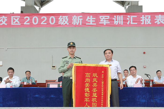 韦文联指出,经过全体教官和广大师生的共同努力,我校龙湖校区2020级新生军训工作已圆满完成了各项任务。经过严格的军事训练,同学们的精神更加饱满了,意志更加坚韧了,组织纪律性和团队意识更强了,军事素质和独立生活的能力提高了,同学们向学校、向教官、老师和家长交上了满意的答卷。他强调,军训锻炼的是体质,磨炼的是意志,锤炼的是作风。十几天的摸爬滚打,十几天的喜人收获,同学们以昂扬的姿态圆满完成了大学第一课。“雄关漫道真如铁,而今迈步从头越”。军训的结束,预示着大学生活的正式开始。希望同学们在即将开始的大学生活,乃至今后的人生中,能够一如继往地保持军训中培养出的军人作风,使之成为一种习惯、一种自觉、一种担当、一种坚守,不忘初心,奋勇前进,不断地“从胜利走向胜利”,谱写更加精彩的新篇章!