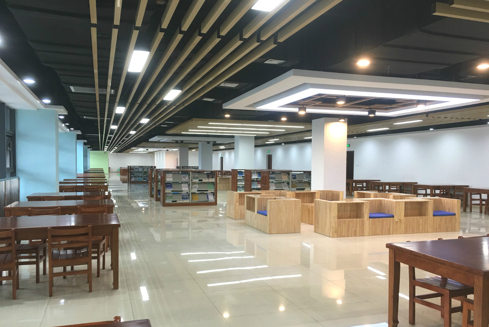 龙湖图书馆内部建设分2期进行,2020年一期建设2-7层,目前先期开放试运行2-4层,11月底前陆续开放5-7层空间。