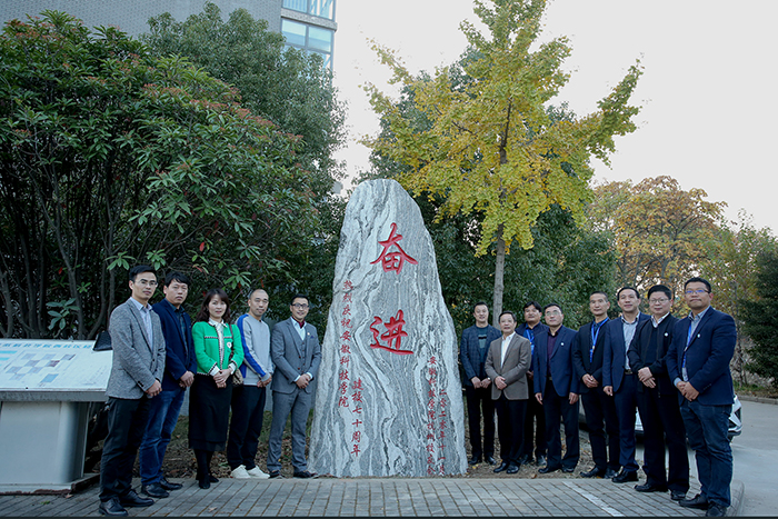 据悉,此校庆石系全体杭州校友出资购买,安放于凤阳校区西校区新知楼A楼东侧草坪处,为学校增添了一处新的景观。该石高3.75米,宽1.90 米,厚0.66米,石头上镌刻有“奋进”主题词,另篆刻:热烈祝贺安徽科技学院建校七十周年!