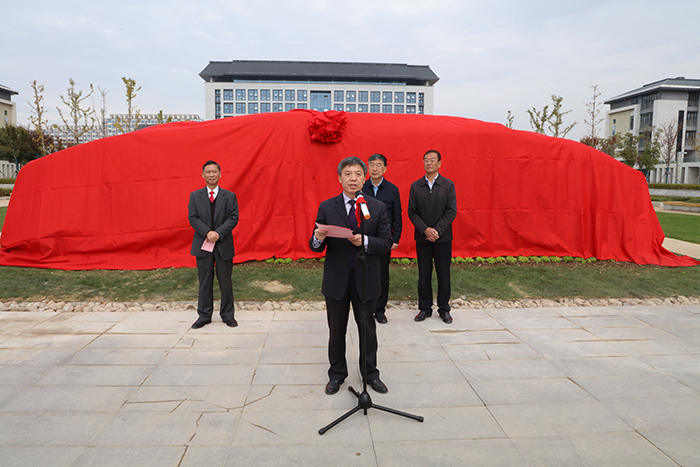 11月5日上午,学校在龙湖校区中央广场隆重举行校训石揭幕仪式。校党委书记蒋德勤,校训石捐赠单位安徽元鼎建设工程有限责任公司董事长叶士平、党委书记吕义龙,学校相关职能部门负责人、龙湖校区二级学院党政领导、师生代表等参加仪式。校党委副书记、校长李震主持仪式。