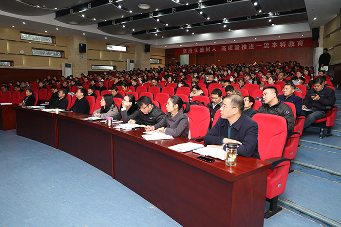 李震代表学校作了题为《坚持立德树人,高质量推进一流本科教育》的教育教学工作报告。