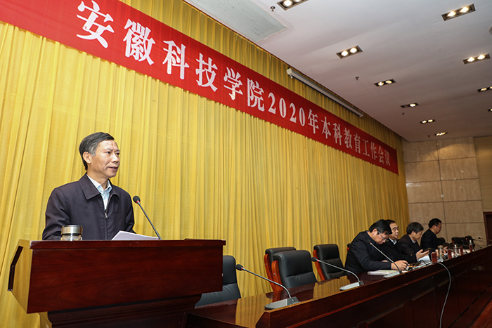11月27日上午9时,学校2020年本科教育工作会议在会议中心二楼报告厅开幕。党委书记蒋德勤,党委副书记、校长李震,党委副书记韦文联,党委委员、副校长黄友锐,党委委员、副校长李升和出席会议。会议由黄友锐主持。