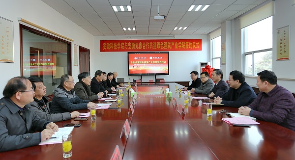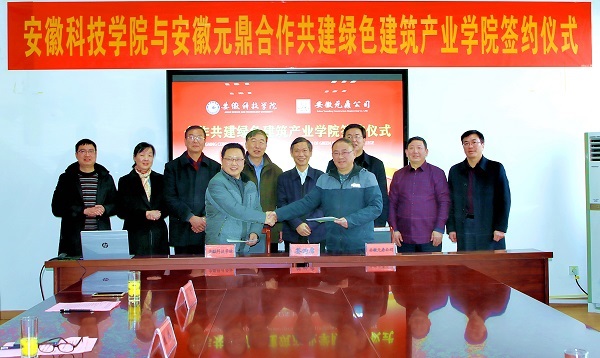 叶士平在致辞中对我校领导和专家表示热烈欢迎,感谢长期以来我校提供的智力支持。他指出,合作共建“绿色建筑产业学院”是在校企前期良好合作基础上的又一次深化。他期望,安徽科技学院充分发挥人才、科研和项目实施、市场转化等资源优势,为企业培养专业人才、提供技术指导和开展项目课题研究;安徽元鼎承载院校安排的实习、实验和科研成果的转化,一定会在绿色建筑产业领域内取得实质性的成果。