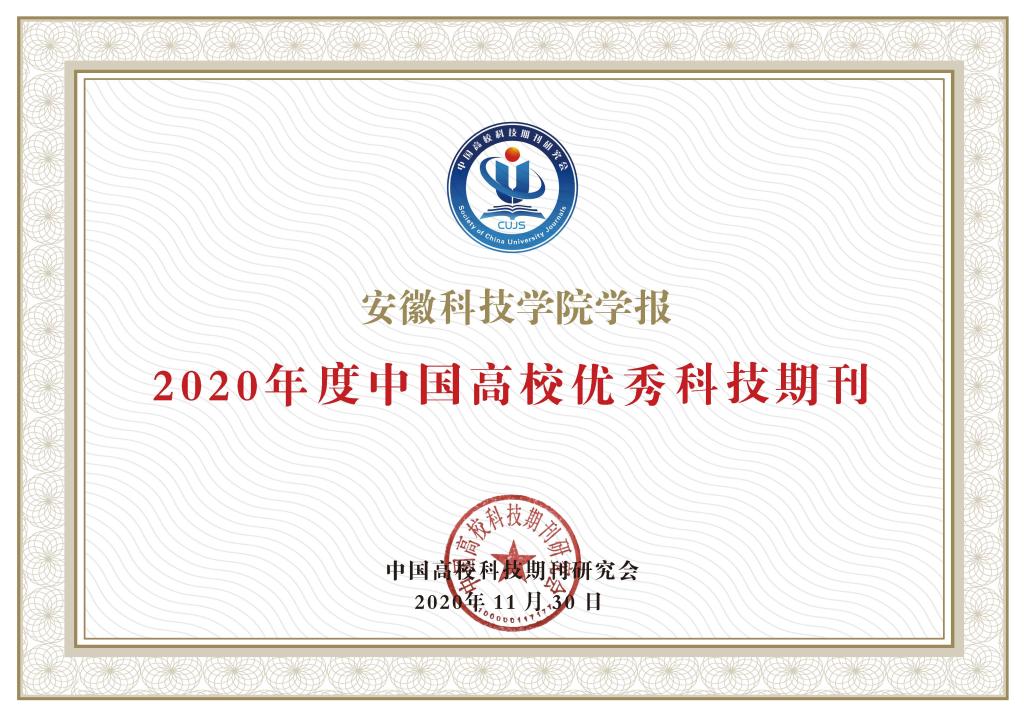 我校学报荣获“2020年度中国高校优秀科技期刊” 荣誉称号