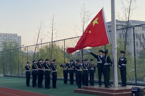 早上6:40,国旗护卫队队员们迎着朝阳,迈着整齐的步伐以饱满的热情、昂扬的姿态护卫着五星红旗,庄严地走向国旗台。鲜艳的五星红旗随着《义勇军进行曲》激扬的歌声冉冉升起,全体师生行注目礼,表达了浓厚的爱国之情。升旗仪式后,会计201班朱叶培深情朗诵了党史经典《党领航程做先锋》:“南湖的航船是孕育您诞生的母体 八一的枪声是您冲破黑暗的呐喊 四九年的宣言让世界震惊 巨龙在东方诞生;胸怀千秋伟业 恰是百年风华 我们是中华民族的子孙 我们呐喊着事业的信仰 我们创造着未来的辉煌。”激情的朗诵深深激发现场师生对中国共产党的崇拜之情、敬畏之心。