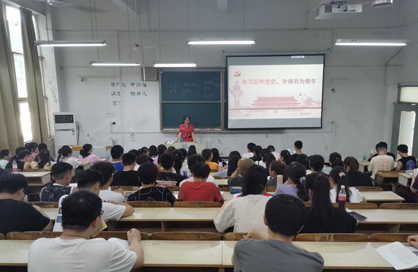 6月15日下午,【辅导员开讲啦】第五期“学习百年党史 争做有为青年”在求知楼A101教室举办。校辅导员理论宣讲团成员、人文学院党委副书记李沙娜主讲,该院学生入党积极分子以及2020级学生代表110余人参加宣讲会。