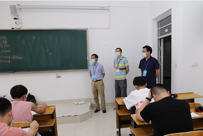 考试期间,李震、黄友锐深入考场巡视指导工作,检查考试各项环节,督查考风考纪。蚌埠市教育招生考试院朱琼主任对我校考试工作进行了检查和指导,对学校此次考试的考场设置、考风考纪、疫情防控等各项工作给予充分肯定。
