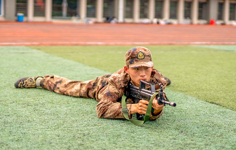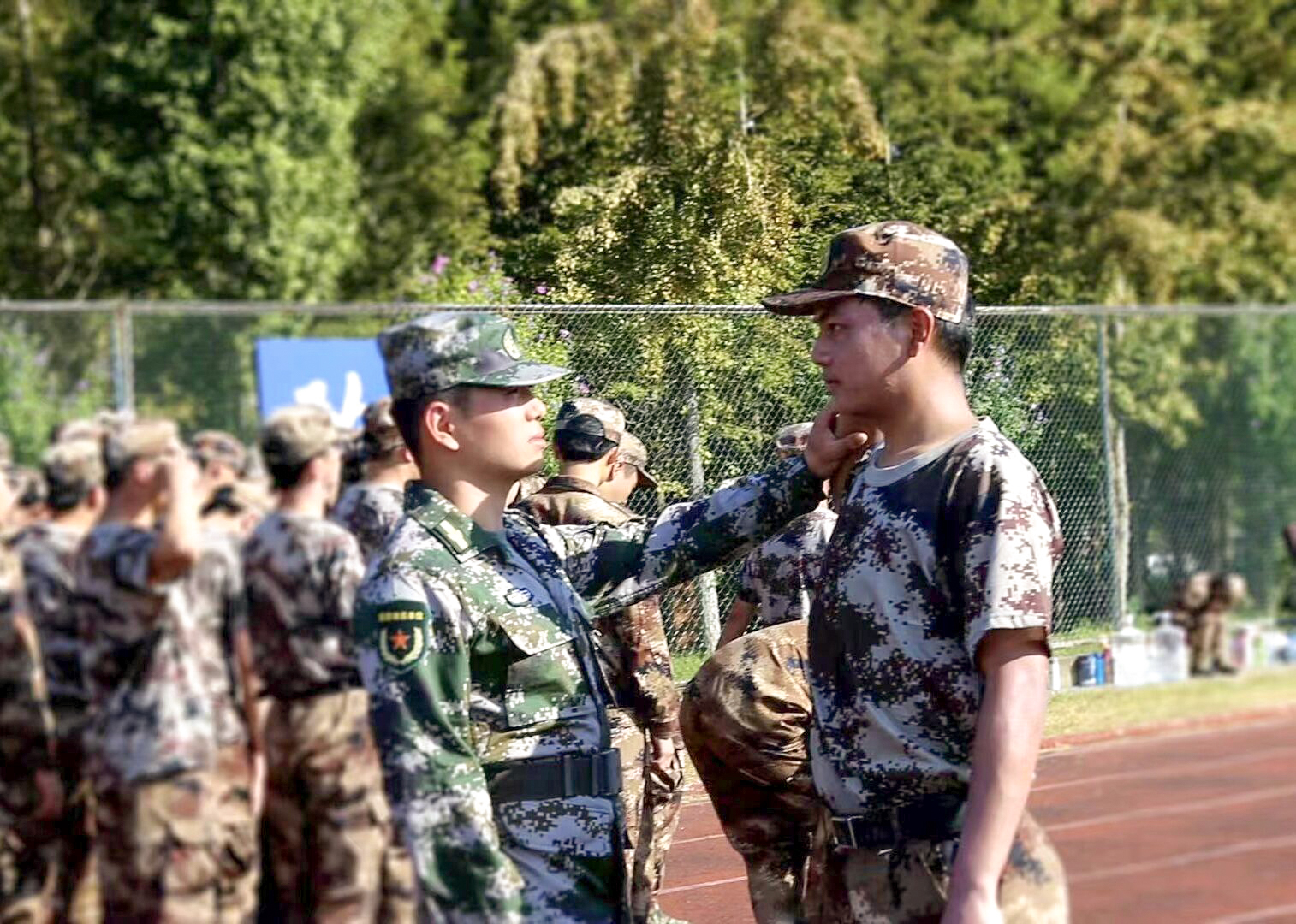 每一个早晨,萌新们都准时到达训练场地,笔直的军姿是训练前的必备课。烈日当空,骄阳似火,但他们纹丝不动,抬头、挺胸、食指夹紧于裤缝,神色坚定透着刻苦与坚毅。