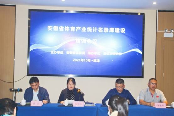 10月12至15日,由安徽省体育局主办、安徽财经大学承办的安徽省体育产业统计名录库建设培训会议在蚌埠举办。省体育局体育产业发展处处长朱雪梅,安徽财经大学体育产业研究院院长、省体育产业重点研究基地常务副主任姜同仁教授,安徽科技学院体育教学部体育大数据研究中心主任宋述雄老师,全省16个地市体育系统产业统计负责人和操作员、安徽省体育产业重点研究基地研究团队成员参加了培训会。